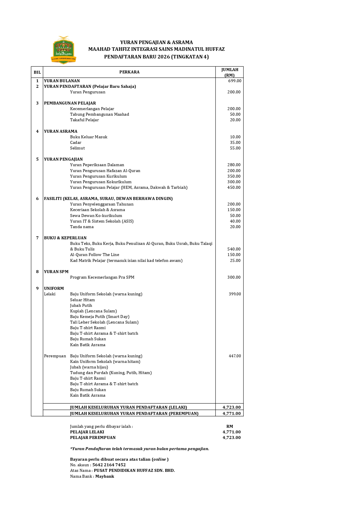 Terbuka kepada pelajar lelaki sahaja